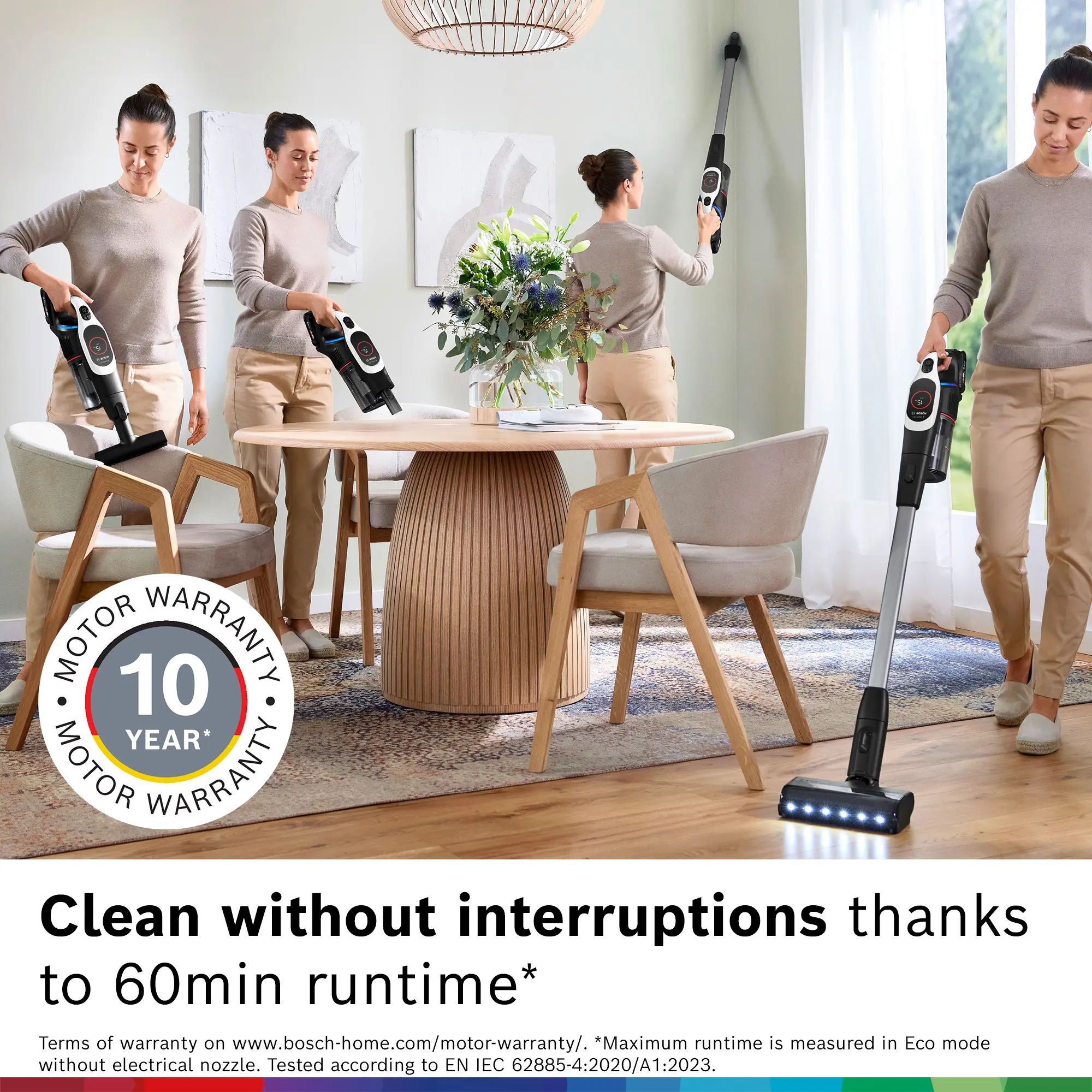 The Bosch Unlimited 9 Cordless Vacuum Cleaner is equipped with a powerful HEPA filtration system and a bagless design featuring dust compression. Therefore, it minimizes dust clouds during emptying while reducing the frequency of bin cleanouts by up to 50%. A MicroClean Ring with sensor-based indicator light provides visual confirmation that the surface has been thoroughly cleaned beyond what the eye can see, ensuring a deeper, allergen-reducing clean every time.