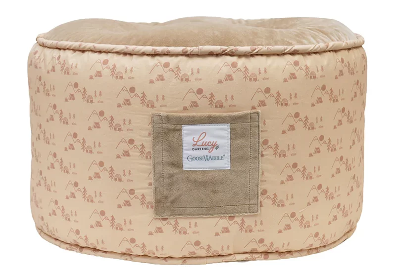 The Lucy Darling Happy Camper Kids Pouf is a charming Toddler Ottoman that doubles as versatile seating, a footrest, or even a compact tabletop. Measuring 19.9 inches deep by 23 inches wide by 13 inches high, it’s crafted from soft polyester and cotton fabrics filled with cozy styrofoam beads for gentle cushioning that’s kind to little ones’ skin. Easy to wipe clean and perfectly sized for home offices or playrooms, this multi-functional piece brings whimsical charm and practicality for toddler play. Mom can tuck the kids’ pouf into a cozy corner in her home office for when the kids want to be close and play without disrupting her work. Retails for $129.99 at lucydarling.com.