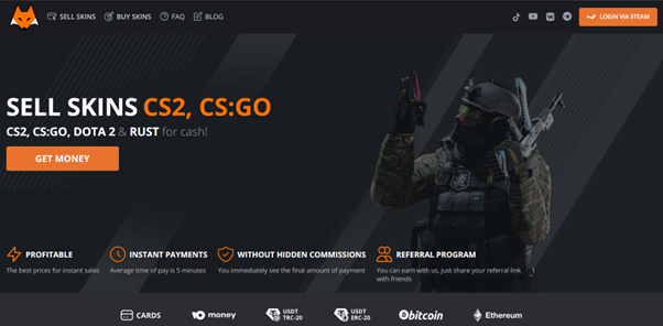 CS.MONEY operates a hybrid model combining instant bot purchases with a P2P storefront. It’s a larger platform with broader item coverage, but its instant purchase rates tend to sit lower than advertised once fees and exchange spreads are factored in. Crypto support exists but is less streamlined than LIS-SKINS – withdrawal options are more limited and processing times are less consistent.