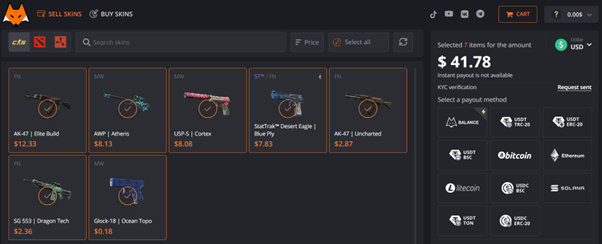 A platform that offers 85% of market value but pays out instantly in USDT may deliver better real-world ROI than one offering 92% with a 7-day hold and Steam wallet lock-in. The same logic applies when you buy CS2 skins – capital locked in a Steam wallet limits which platforms and opportunities you can access, while liquid crypto opens the full market instantly. Time value of capital matters in a market that moves as fast as CS2.